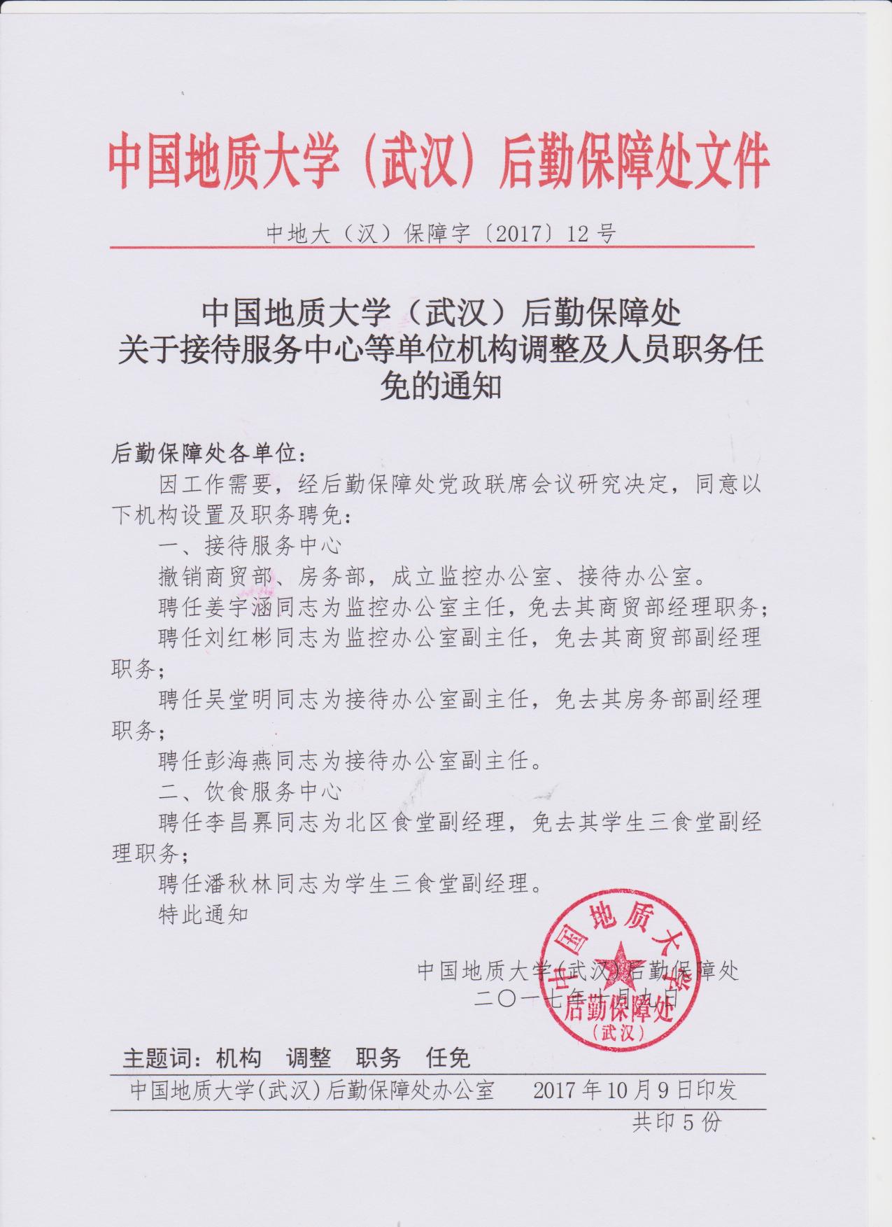 关于接待服务中心等单位机构调整及人员职务任免的通知