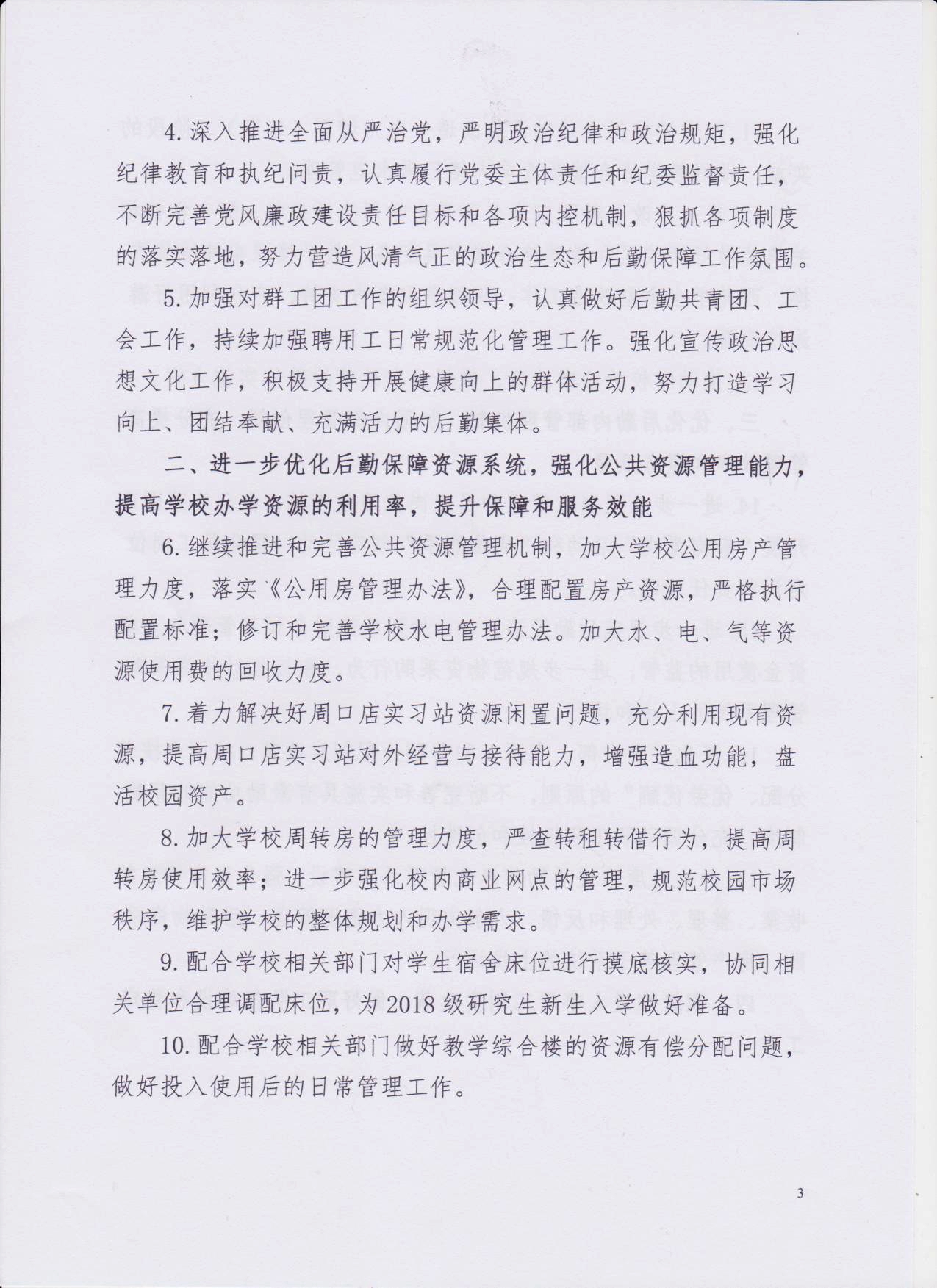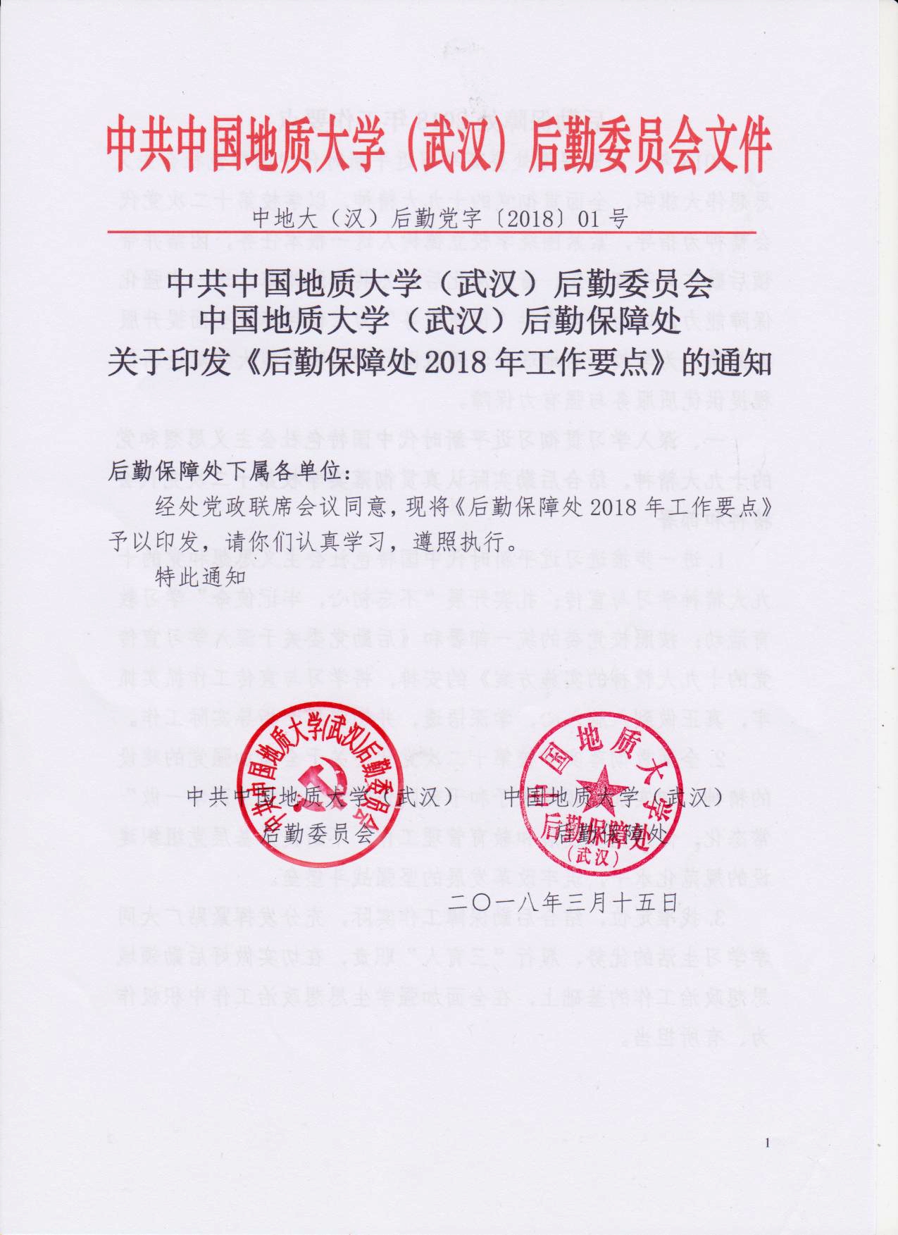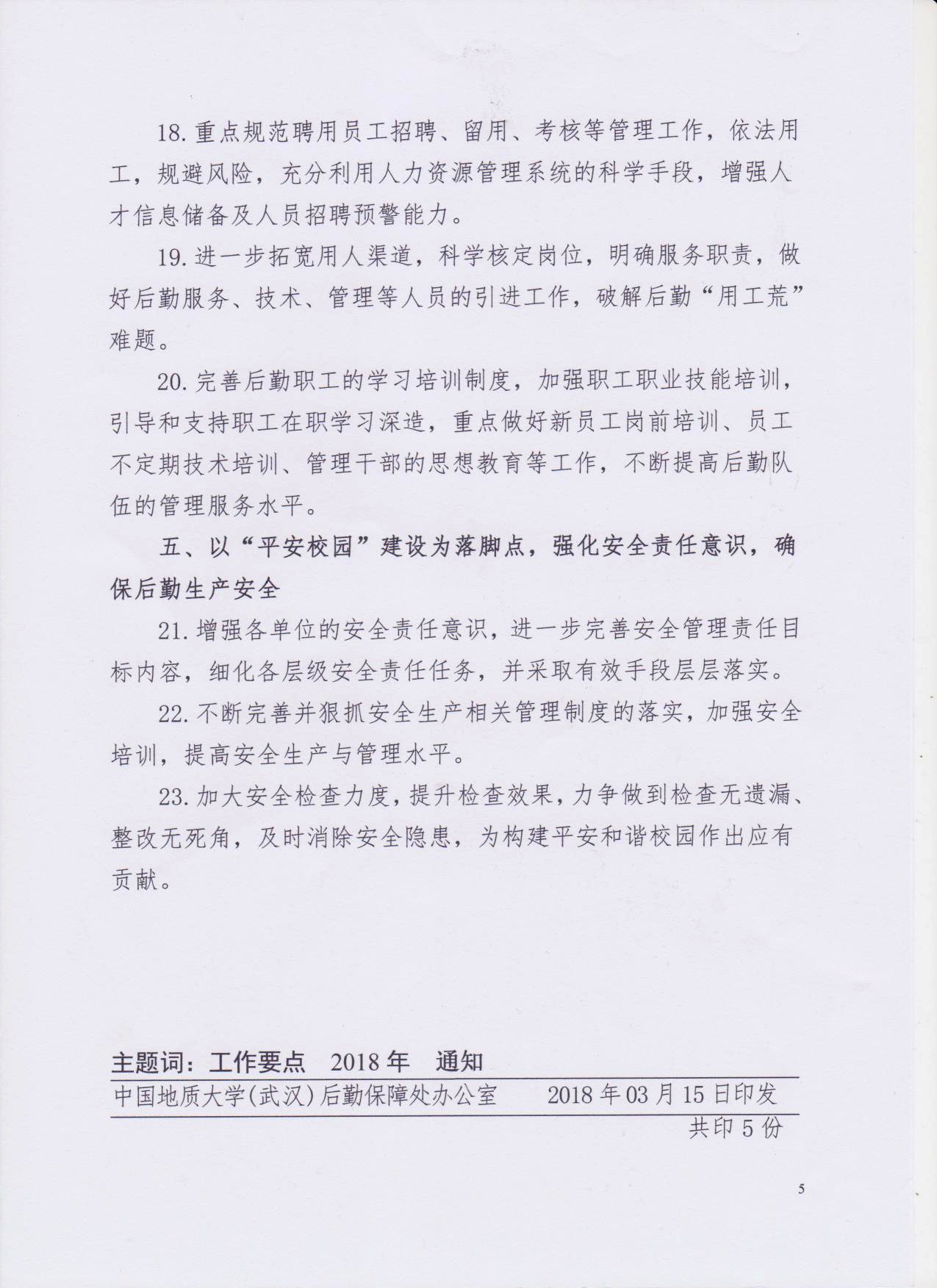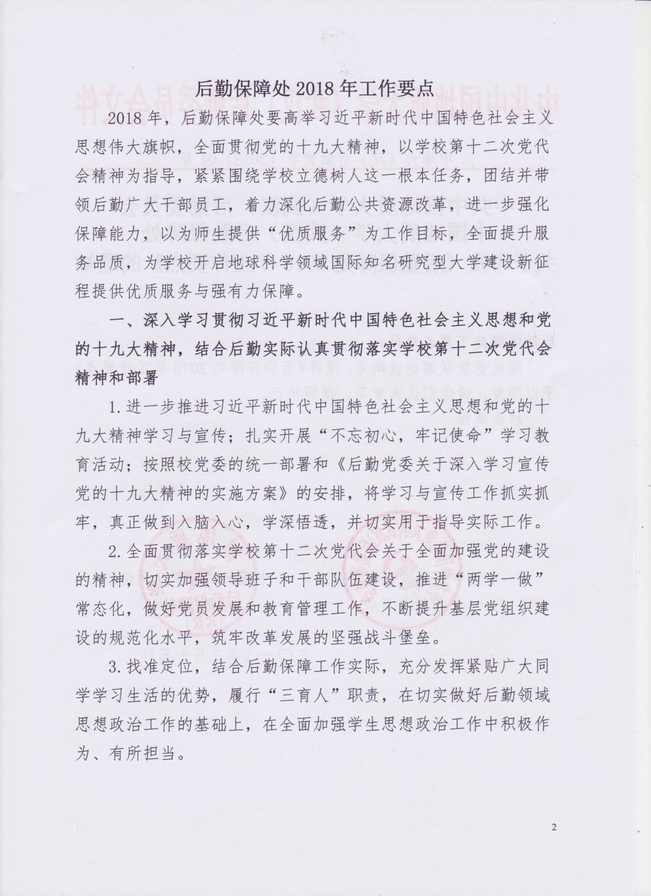 关于印发《后勤保障处2018年工作要点》的通知