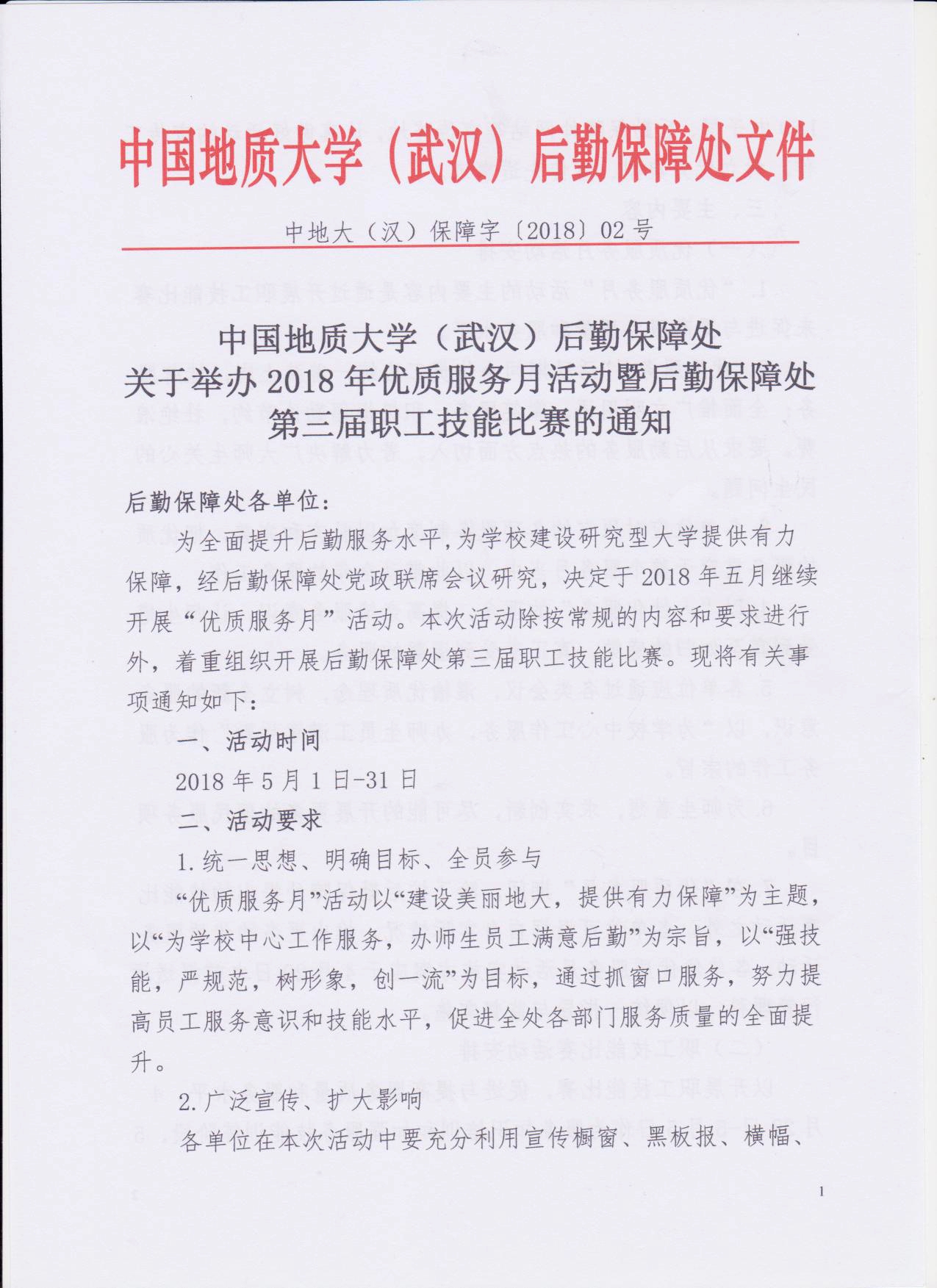 关于举办2018年优质服务月活动暨后勤保障处第三届职工技能比赛的通知